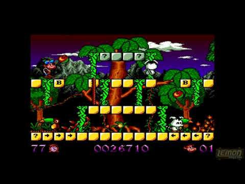 Charlie Chimp won a AMOS game-competition, is what is mentioned at the start of the game. Well, to be honoust, I don't think there was much competition. Charlie Chimp is a bit of a CarVup rip-off. It even "borrows" a lot of the game sounds of that game. What is it all about? You are Charlie, a chimp (surprise surprise!) and you have to walk around the levels changing the colour of all the platforms. There are all sorts of enemies walking around who try to stop you in your quest, but you can hit them with a tennis racket. There is a time limit and when you take to long, an evil big enemy appears who will try to stop you. Compared to CarVup this isn't very good and I would say, just play that game if you like the concept. Charlie Chimp isn't bad, but CarVup just is better, I think